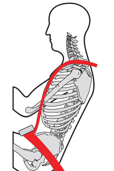 Since the 2" webbing fits well within the Iliac Crest of the pelvis, it is less likely to slide up above the crest and cause submarining - a condition where the body slides down below the lap belt possibly causing internal organ damage.